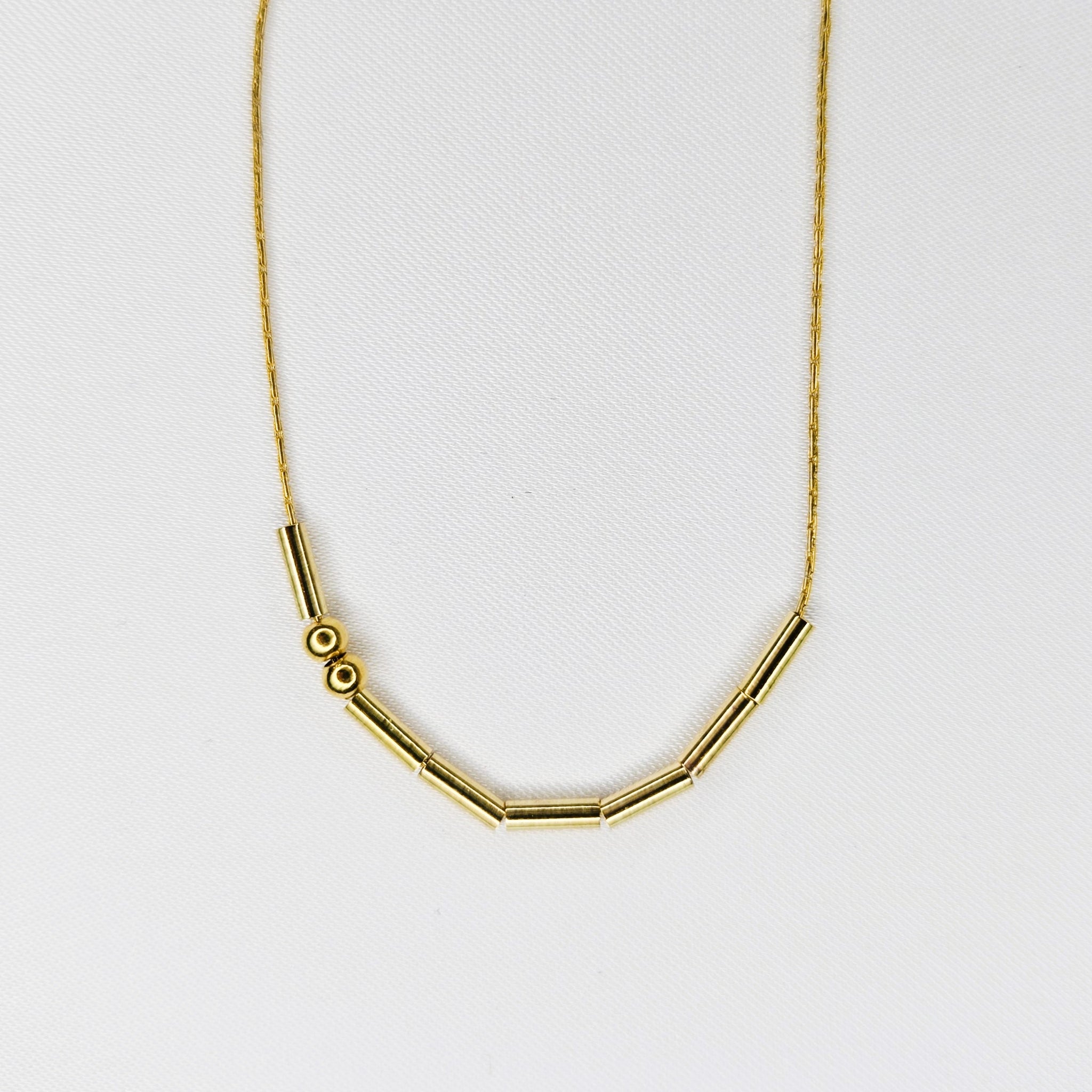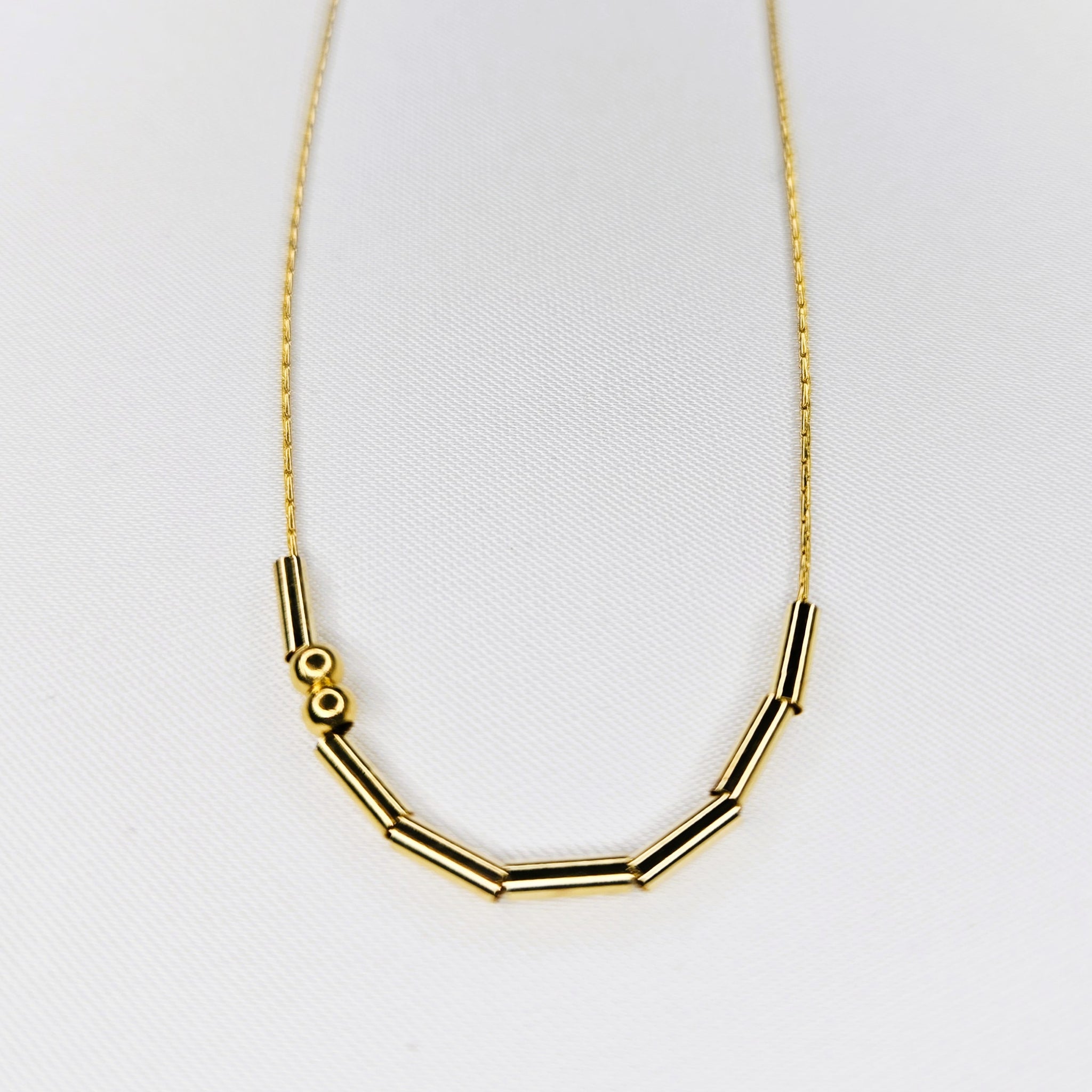 Este delicado collar transmite un mensaje único en clave Morse, formado con cadena, broche, cuentas y abalorios bañados en chapa de oro. Cada punto y raya se convierte en un detalle elegante, creando una joya personalizada, discreta y significativa. Ideal para regalar o llevar un mensaje especial cerca del corazón.