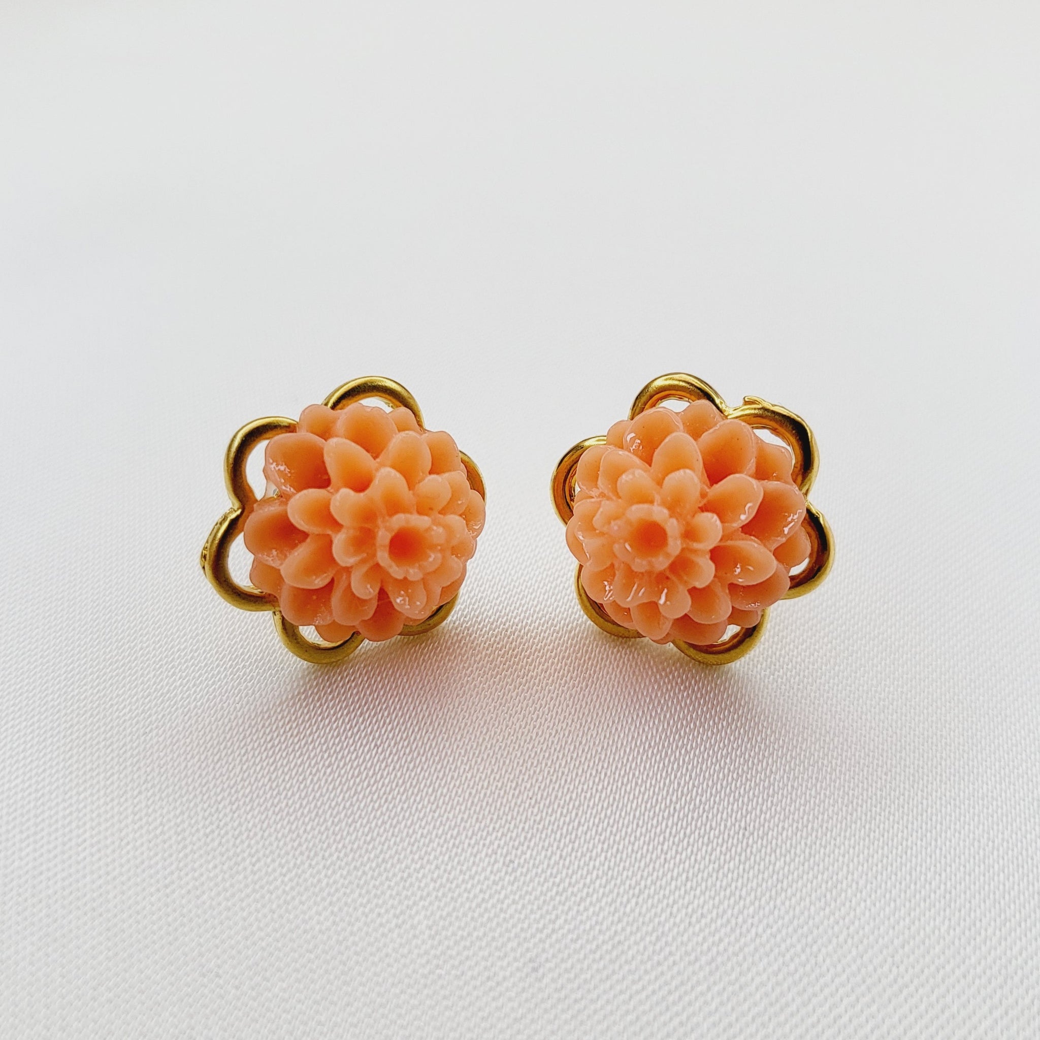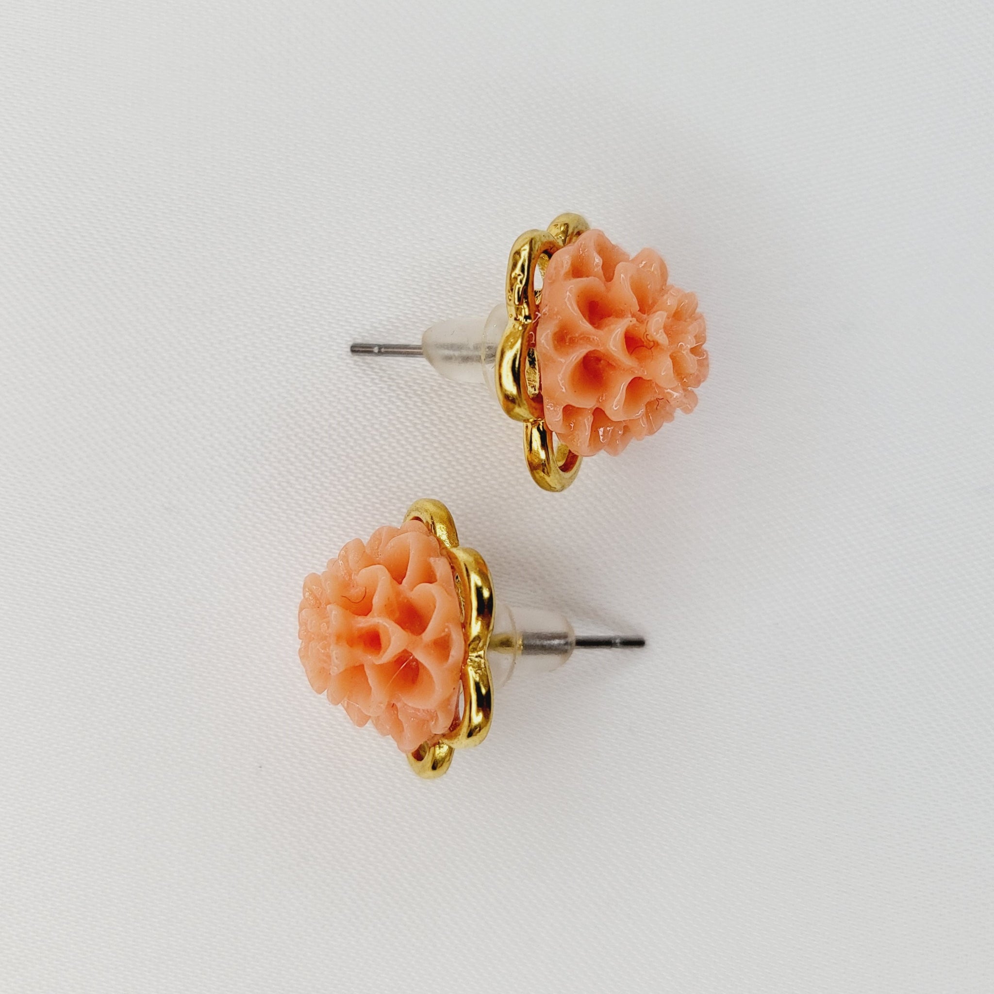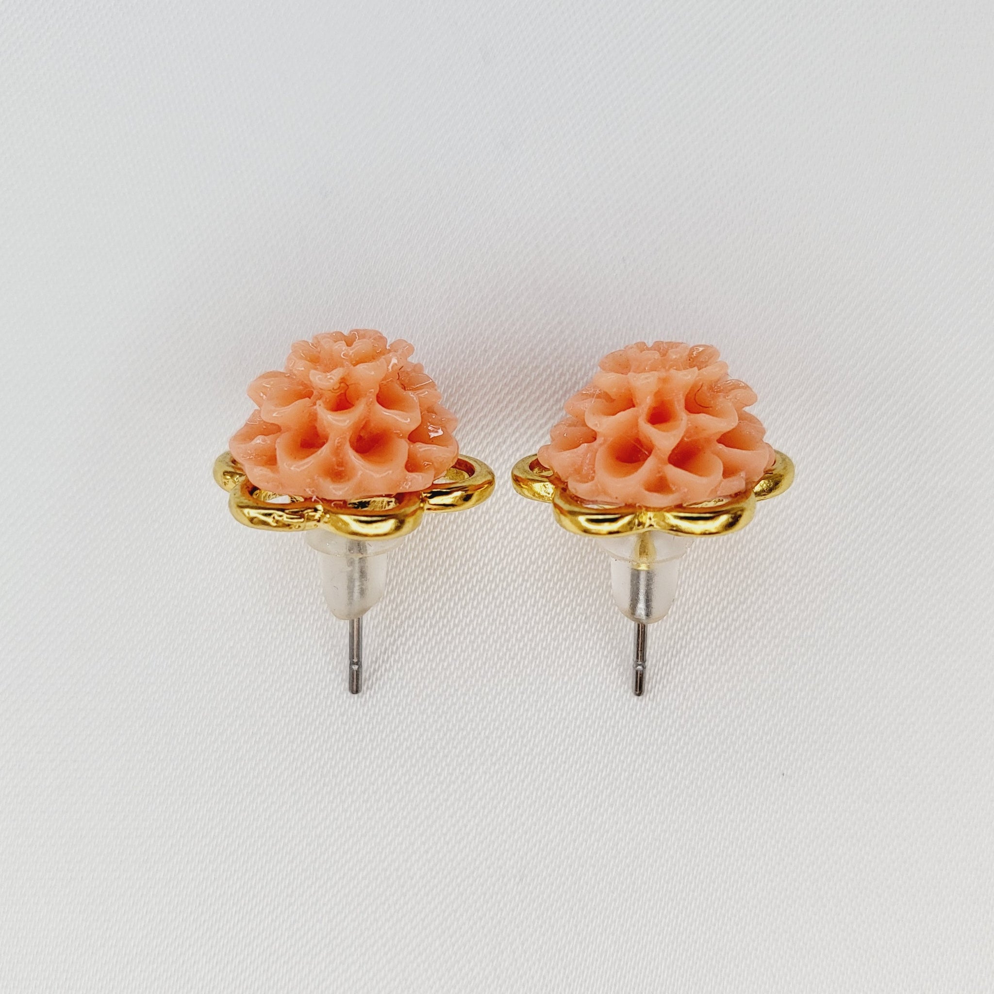 Aretes pegados de chapa de oro con flor de resina.
