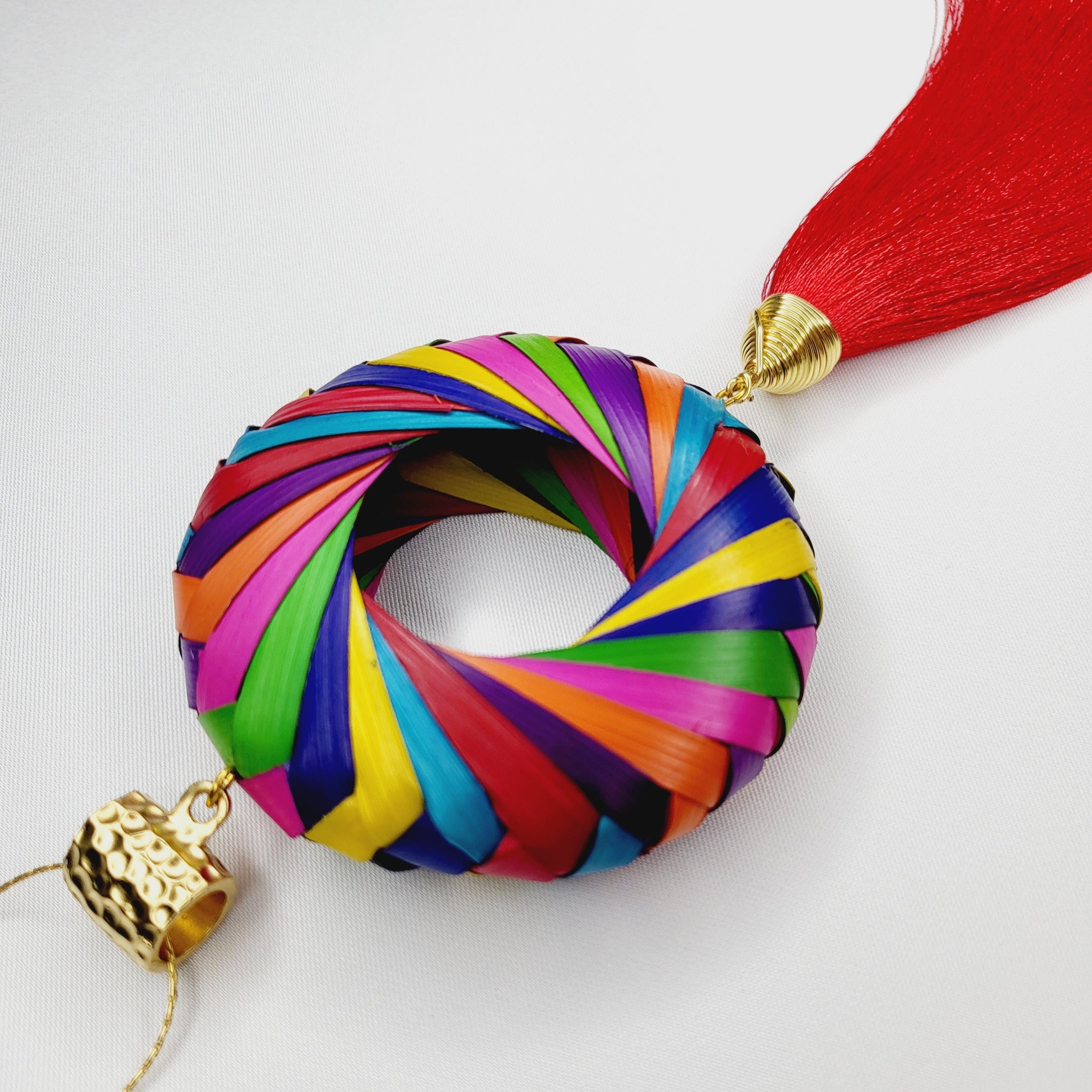 • Cargar imagen en el visor de la galería, Collar Aro de Palma Multicolor Rojo